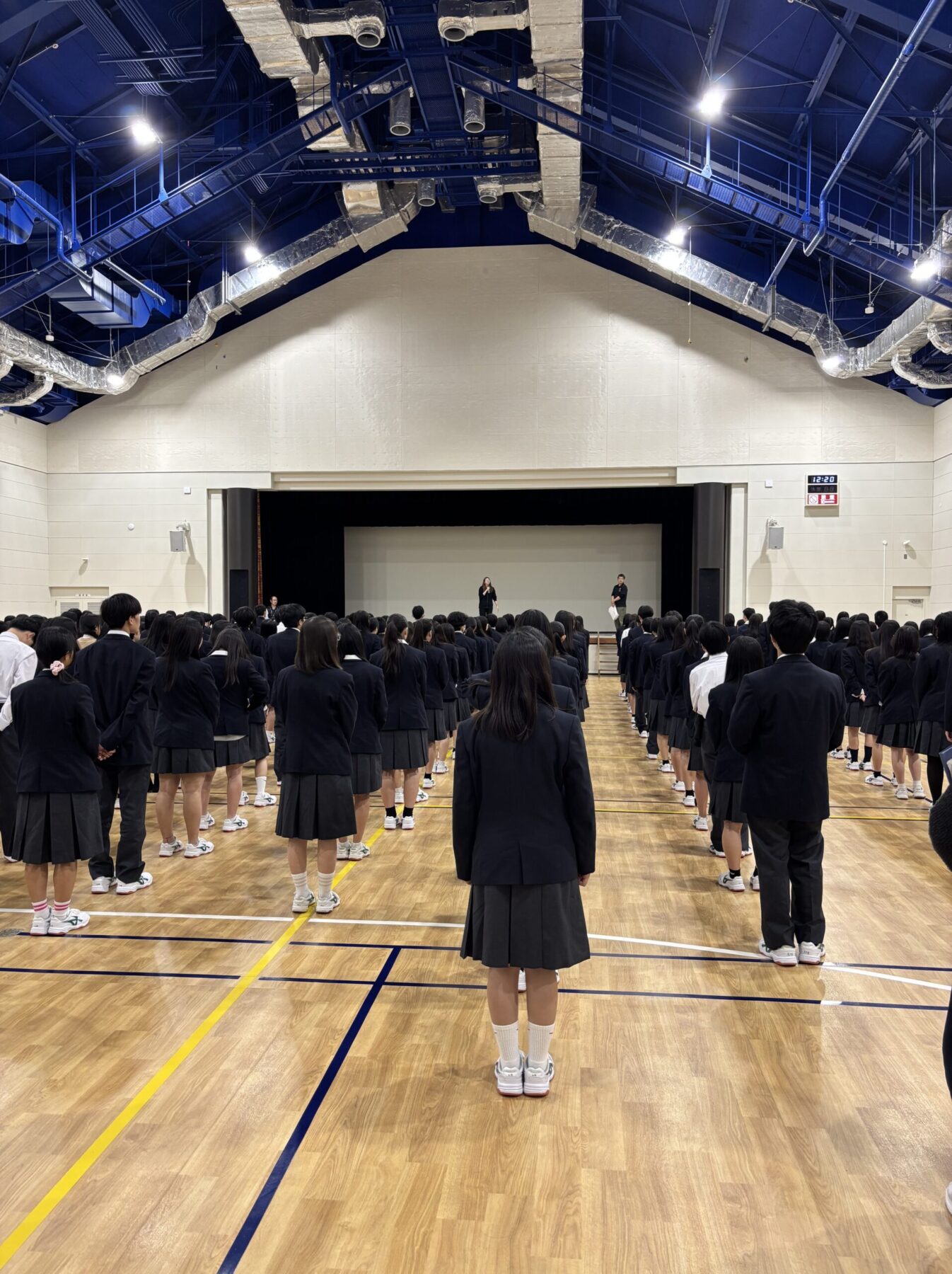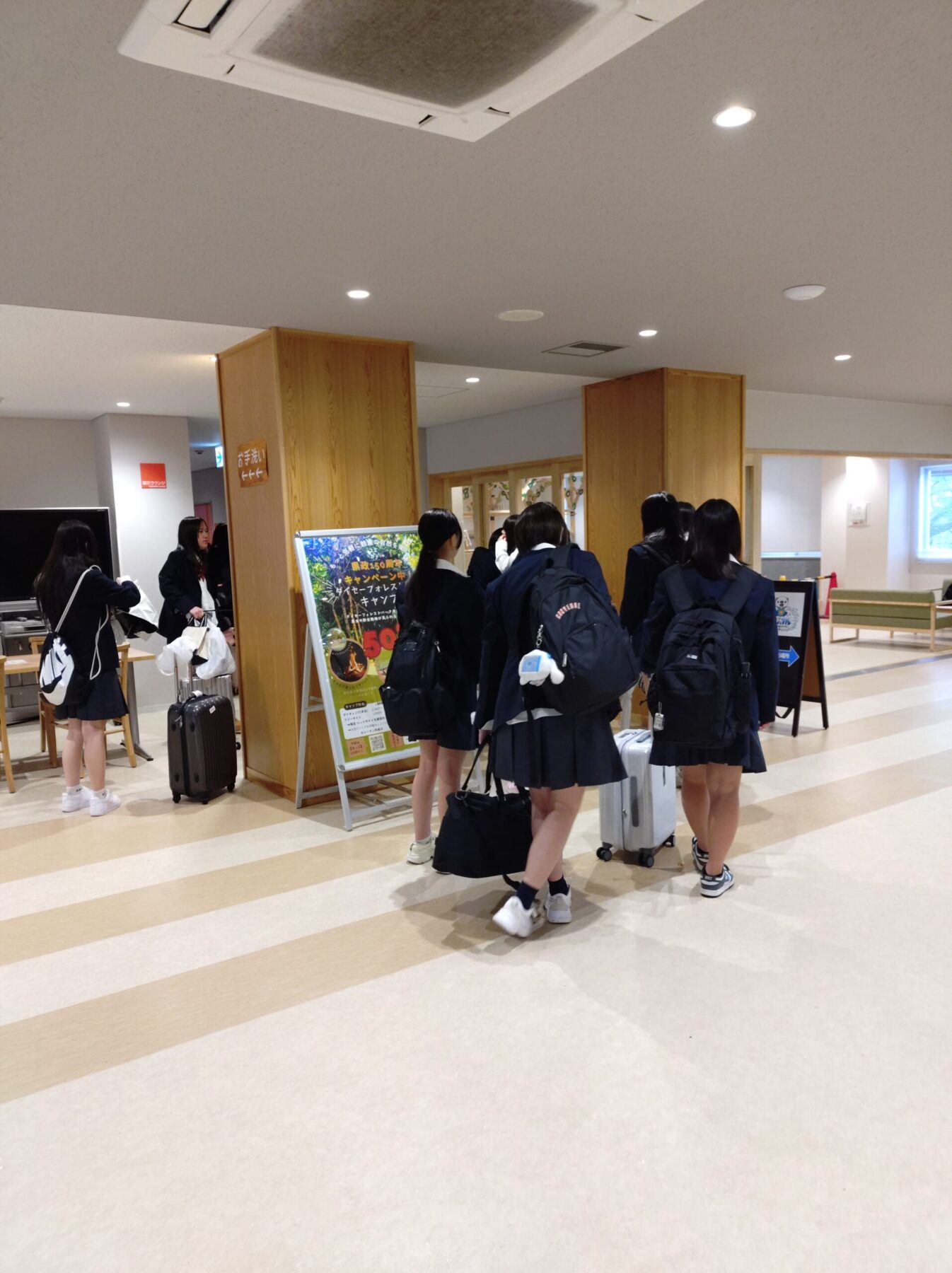 2026.04.23 1年生 HR合宿 到着~昼食 学校行事 相変わらずの雨ではありますが、無事到着しました!! センターのホールに移動して、開講式を行います。 お昼はここで、お弁当を食べました。 このあと、レクリェーション・スタートです!